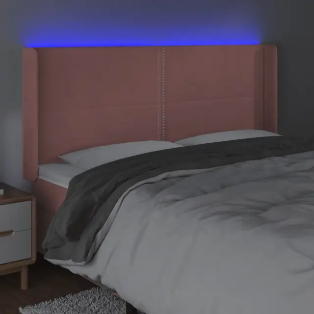 vidaXL LED posteljno vzglavje roza 203x16x118/128 cm žamet