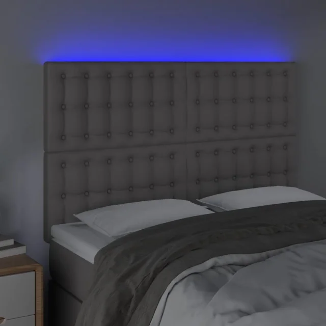 vidaXL LED posteljno vzglavje sivo 144x5x118/128 cm umetno usnje