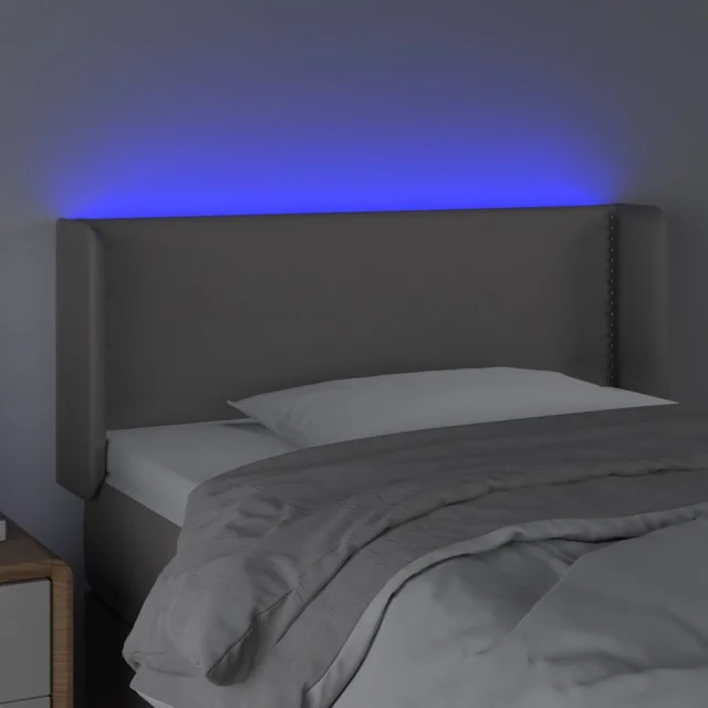 vidaXL LED posteljno vzglavje sivo 83x16x78/88 cm umetno usnje