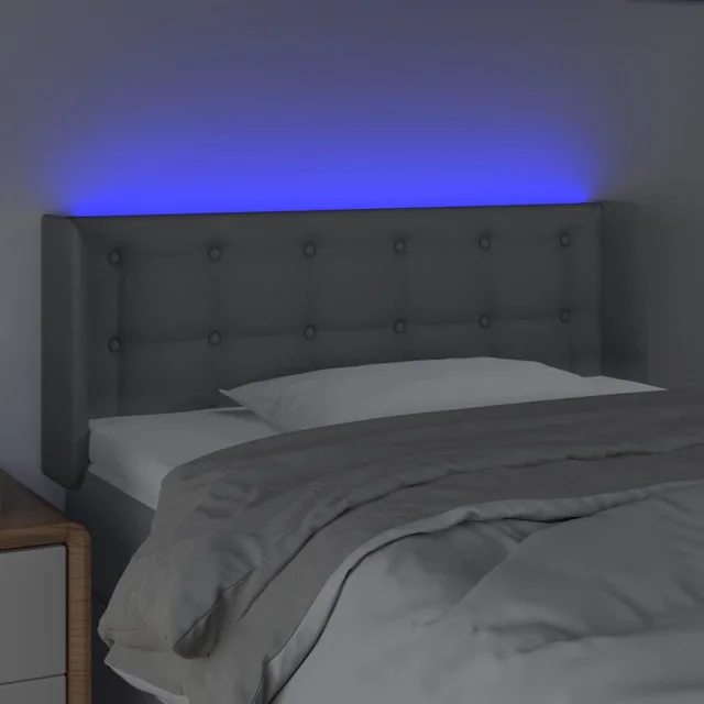 vidaXL LED posteljno vzglavje svetlo sivo 83x16x78/88 cm blago