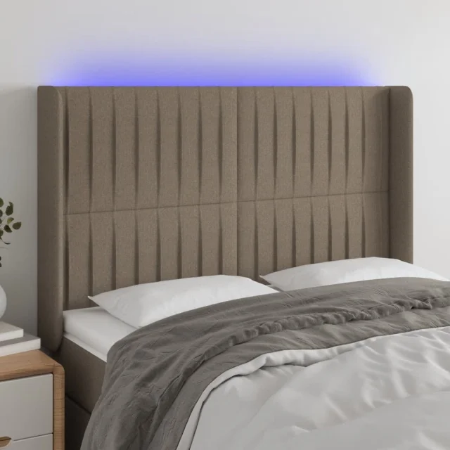 vidaXL LED posteljno vzglavje taupe 147x16x118/128 cm blago