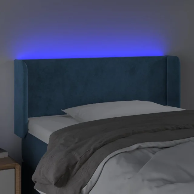 vidaXL LED posteljno vzglavje temno modro 103x16x78/88 cm žamet
