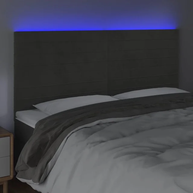 vidaXL LED posteljno vzglavje temno sivo 180x5x118/128 cm žamet