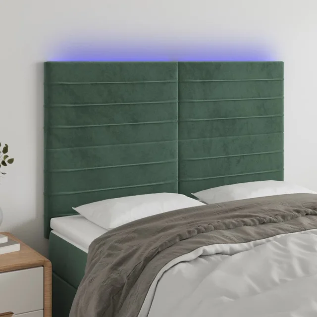 vidaXL LED posteljno vzglavje temno zeleno 144x5x118/128 cm žamet