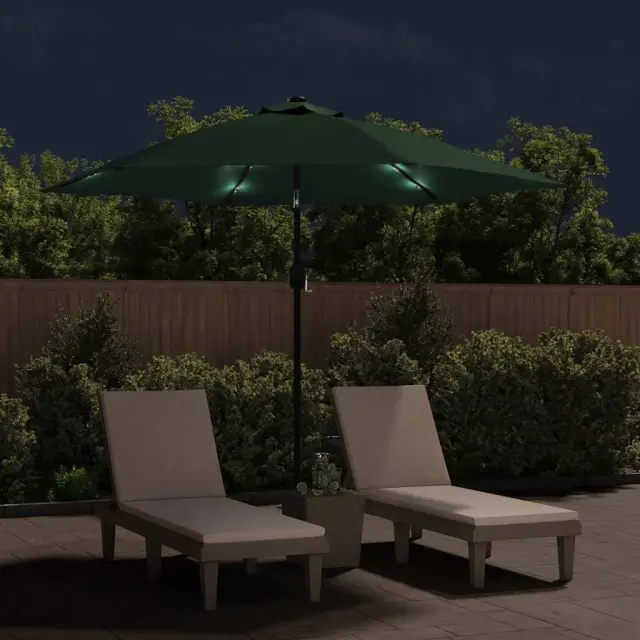 Dolga izpostavljenost soncu ni dobra za vaše telo. Ta LED previsni sončnik je narejen iz UV-odpornega poliestra, ki bo zaščitil vašo kožo, saj bo blokiral večino UV svetlobe. Sončnik je veliko bolj stabilen zahvaljujoč enojni odprtini, ki bo omogočala pretok vetra skozi sončnik. Vročina in vroč zrak, ki se nabirata pod sončnikom, bosta lahko pobegnila skozi odprtino za prezračevanje, kar bo omogočilo pritok hladnejšega zraka. Zato vam bo tudi veliko bolj udobno. Ta zunanji sončnik ima na vsaki izmed 6 palic 3 solarne LED svetilke, ki bodo vsaki zunanji večerji z ljubljenimi dodale kanček romantike!Barva senčnika: ZelenaMaterial senčnika: PoliesterPremer senčnika: 3 mVišina: 2,25 mMaterial: Jeklen okvir s črno oblogo iz umetne masePalica z dvema predeloma: 38 mmRočični in nagibni mehanizem18-solarnih LED svetilkS 6 jeklenimi palicamiEnojna odprtina (brez lopute)Previsni dizajnViseč senčnik z ročicoOdporno na veterDobra ventilacija in začita pred UVOdlična osvetlitev ponočiTkanina: Poliester: 100% 42203