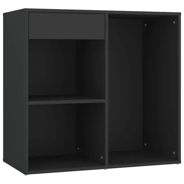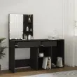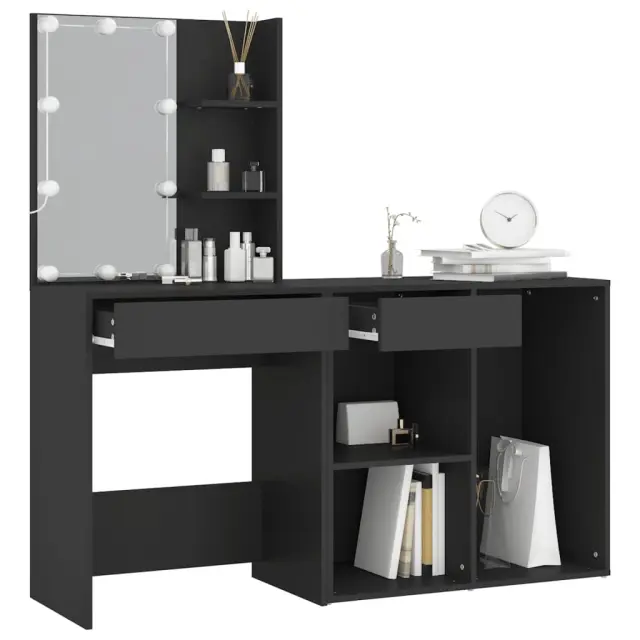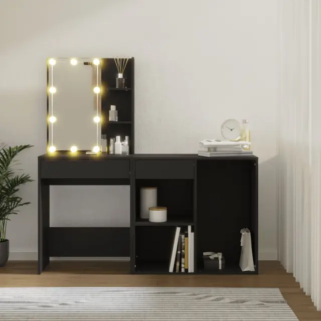 vidaXL LED toaletna mizica z omarico črn inženirski les