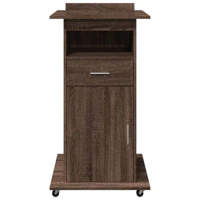 vidaXL Lektorat s kolesi in predalom rjavi hrast 55x55x107 cm inž. les