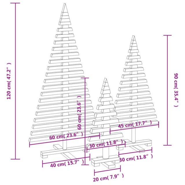 vidaXL Lesena novoletna jelka za okras 3 kosi trdna borovina