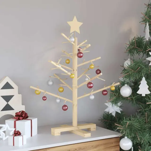 vidaXL Leseno božično drevo z stojalom Naravna 75 cm Trdna borovina