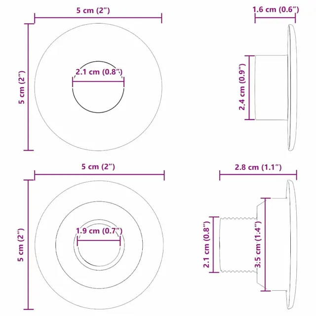 vidaXL Ležaji za nogometno mizo za palice 5 x 5 x 2.8 cm 10 pcs