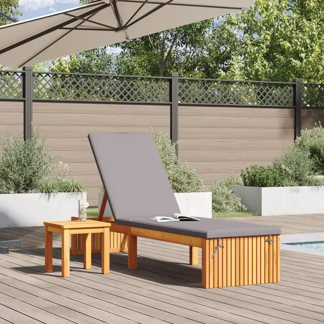 Ta vidaXL sončni ležalnik, narejen iz trdnega akacijevega lesa in opremljen z mehko sivo blazino, je popoln za tvoje zunanje druženje. S svojim modernim izgledom in praktičnimi funkcijami je super dodatek za tvoj balkon, vrt ali teraso, kar te spodbuja, da se sprostiš in uživaš v prostem času.
