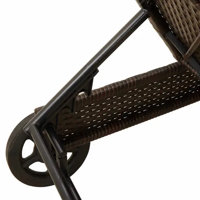 vidaXL Ležalnik s kolesi in blazino rjav poli ratan