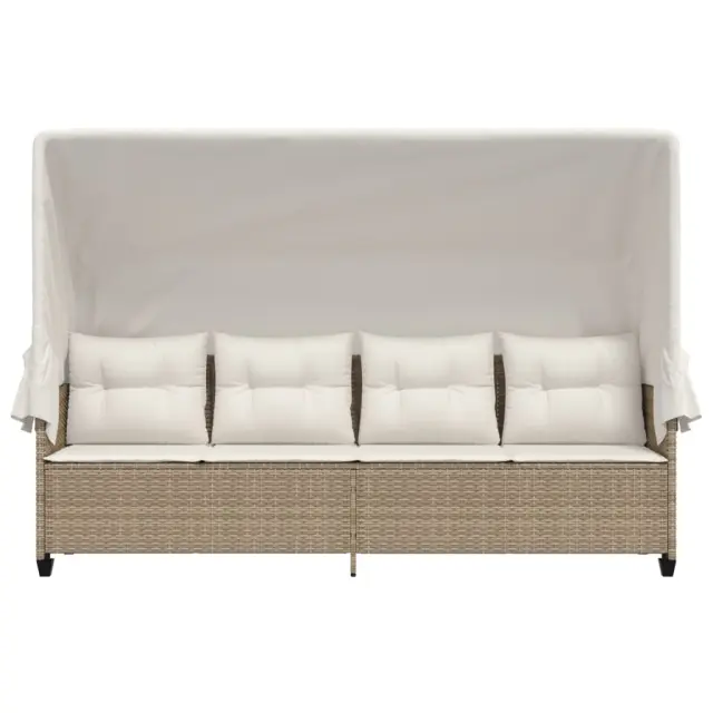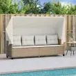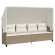 vidaXL Ležalnik s streho in blazinami bež poli ratan