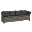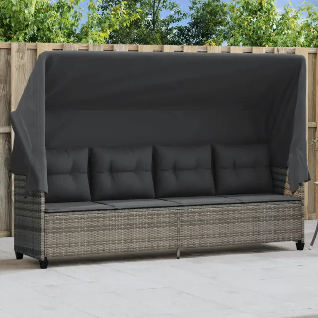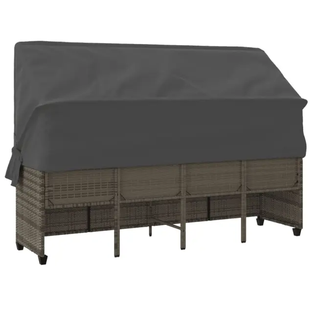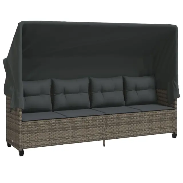 vidaXL Ležalnik s streho in blazinami siv poli ratan