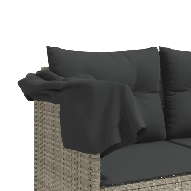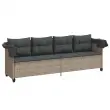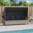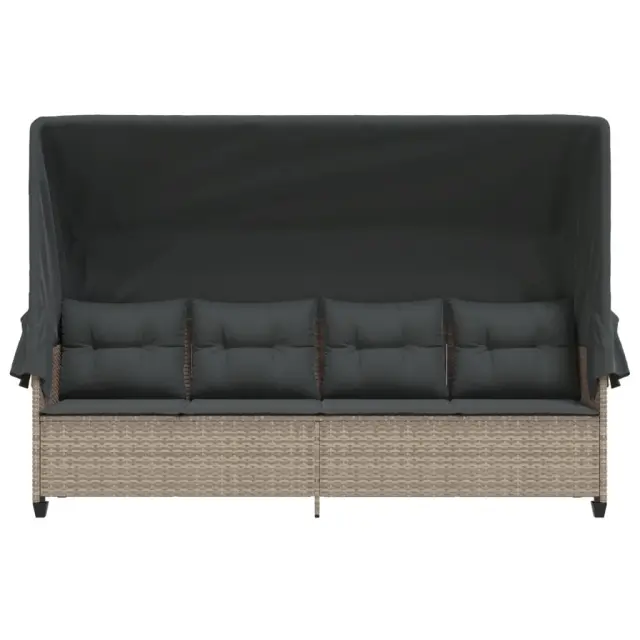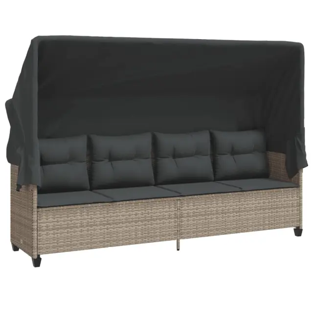 vidaXL Ležalnik s streho in blazinami svetlo siv poli ratan