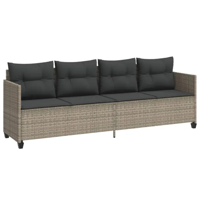 vidaXL Ležalnik z blazinami svetlo siv poli ratan