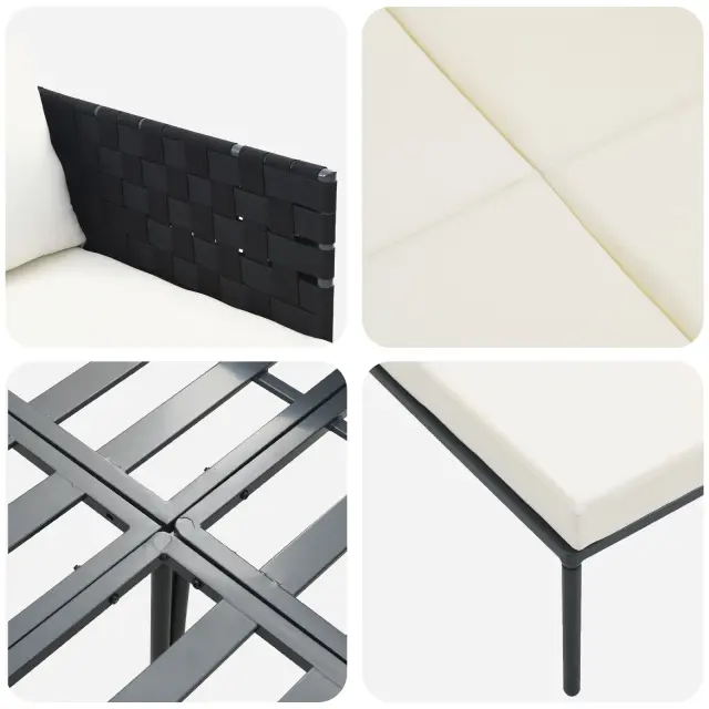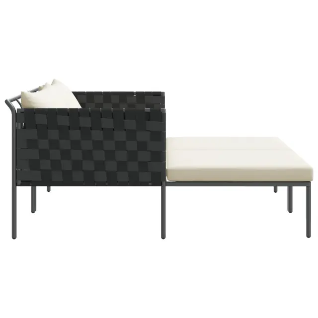 Ta oblazinjeni ležalnik na soncu združuje moderni slog s sproščujočim vzdušjem, idealen za uživanje na prostem. Njegova krem bela barva in eleganten črni okvir dodajata stil vsakemu balkonu ali terasi – super za ležanje ob bazenu ali uživanje na soncu v vrtu.
