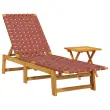 Ta ležalnik iz poli ratana bo idealen za sončenje in sproščanje v bližini bazena, na terasi ali na vrtu. Trden akacijev les: Trden akacijev les je čudovit naravni material. Akacijev les je tropski trden les, ki je gost, močan in vzdržljiv. Zato je okvir ležalnika iz akacijevega lesa z oljnim premazom stabilen in enostaven za vzdrževanje.Material z dolgo življenjsko dobo: Olefinska vlakna, znana tudi kot polipropilenska vlakna (PP), so udobna, trpežna, dolgotrajna in zelo odporna na bledenje zaradi sončne svetlobe.Nastavljivo naslonjalo za hrbet: Udoben ležalnik ima nastavljivo naslonjalo za hrbet s 4 položaji za optimalno sprostitev.Trpežna mizna plošča: Letvena mizna plošča zunanje mize je zasnovana tako, da omogoča enostavno odvajanje vode, poleg tega pa nudi odlično podlago za pijačo, prigrizke, košare s sadjem in vaše najljubše okraske.Prepletena zasnova: Sedež in hrbtni del vrtnega ležalnika sta zasnovana s prepleteno tkanino za udobje, eleganco in zračnost. Dobro je vedeti:Če želite, da vaše zunanje pohištvo ostane lepo, vam priporočamo, da ga zaščitite z vodoodporno prevleko.Potrebno sestavljanje: DaVrtni ležalnik:Barva: Rdeča in rjavaMaterial: Tkanina (100 % olefin), trden akacijev les z oljnim premazomDimenzije: 157 x 55 x 60/74/87 cm (D x Š x V)Dimenzije (popolnoma raztegnjen): 201 x 55 x 30 cm (D x Š x V)Višina sedeža, merjena od tal: 30 cmNaslonjalo za hrbet s 4 nastavljivimi položajiMaksimalna nosilnost: 110 kgMiza:Material: Trden akacijev les z oljnim premazomDimenzije: 40 x 40 x 40 cm (D x Š x V)Paket vsebuje:1 x Vrtni ležalnik1 x Miza 3214214
