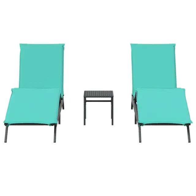 vidaXL ležalniki 2 kosa z mizo Black Poly Rattan (samo za ZDA)