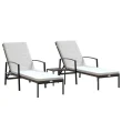 vidaXL Ležalniki 2 kosa z mizico poli ratan rjavi