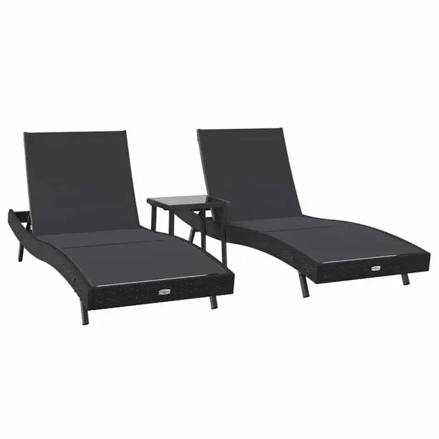 vidaXL Ležalniki 3 pcs Črna 40 x 40 x 40.5 cm poli ratan