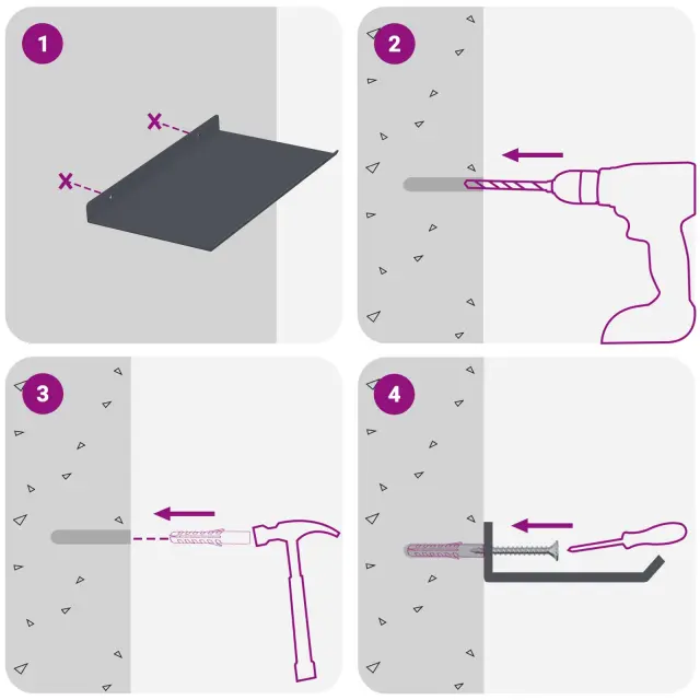 • Enostavna namestitev Polica je zasnovana za hitro in enostavno montažo na steno z osnovnimi orodji. Vijaki niso vključeni, takže jih izberite glede na svojo steno.