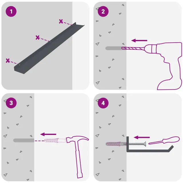 • Enostavna namestitev Polica je zasnovana za hitro in enostavno montažo na steno z osnovnimi orodji. Vijaki niso vključeni, takže jih izberite glede na svojo steno.