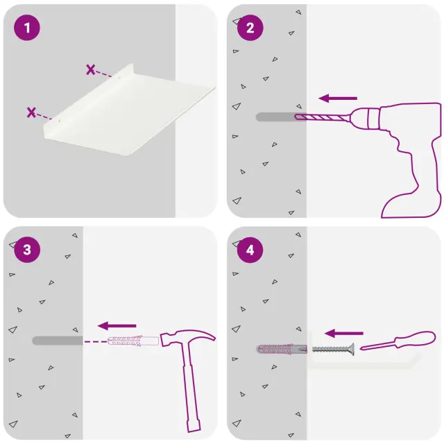 • Enostavna namestitev Polica je zasnovana za hitro in enostavno montažo na steno z osnovnimi orodji. Vijaki niso vključeni, takže jih izberite glede na svojo steno.