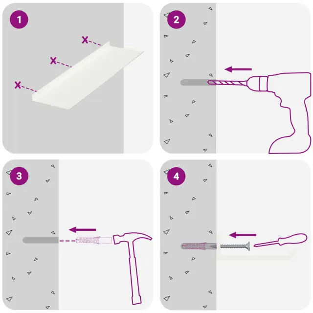 • Enostavna namestitev Polica je zasnovana za hitro in enostavno montažo na steno z osnovnimi orodji. Vijaki niso vključeni, takže jih izberite glede na svojo steno.