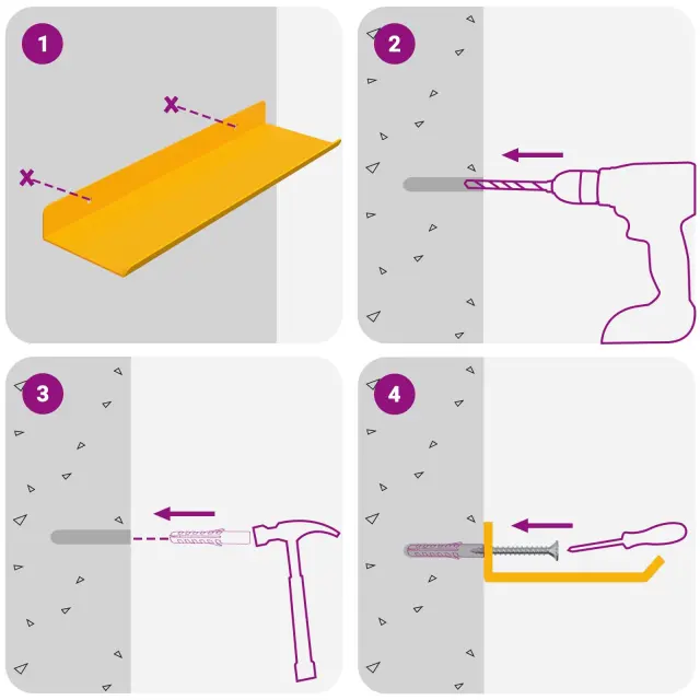 • Enostavna namestitev Polica je zasnovana za hitro in enostavno montažo na steno z osnovnimi orodji. Vijaki niso vključeni, takže jih izberite glede na svojo steno.