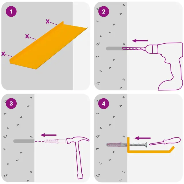 • Enostavna namestitev Polica je zasnovana za hitro in enostavno montažo na steno z osnovnimi orodji. Vijaki niso vključeni, takže jih izberite glede na svojo steno.