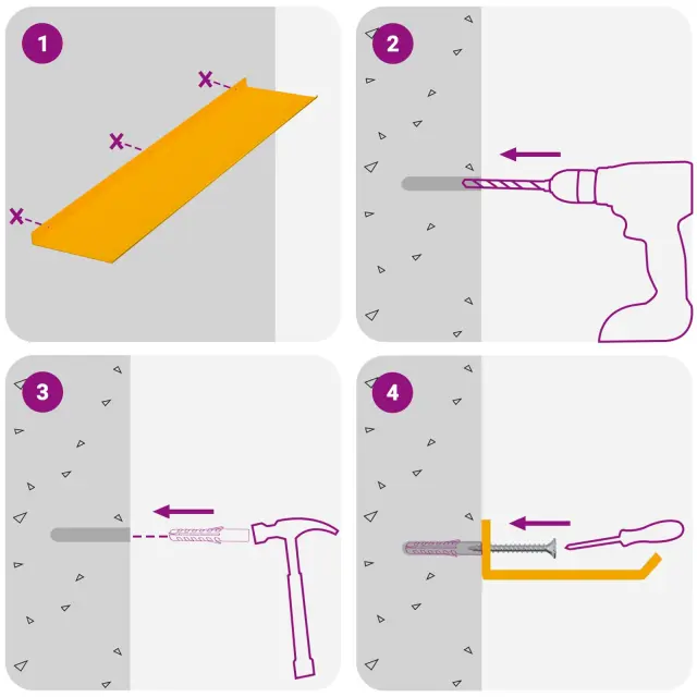 • Enostavna namestitev Polica je zasnovana za hitro in enostavno montažo na steno z osnovnimi orodji. Vijaki niso vključeni, takže jih izberite glede na svojo steno.