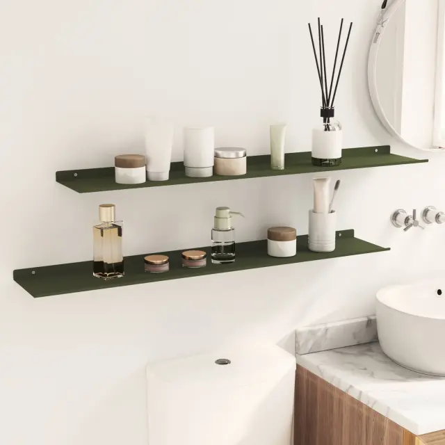 vidaXL Ležeča polica 2 pcs Oljčno zelena 100 x 18 x 2,5 cm Jeklo