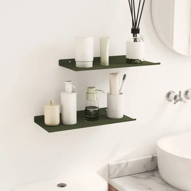 vidaXL Ležeča polica 2 pcs Oljčno zelena 40 x 18 x 2,5 cm Jeklo