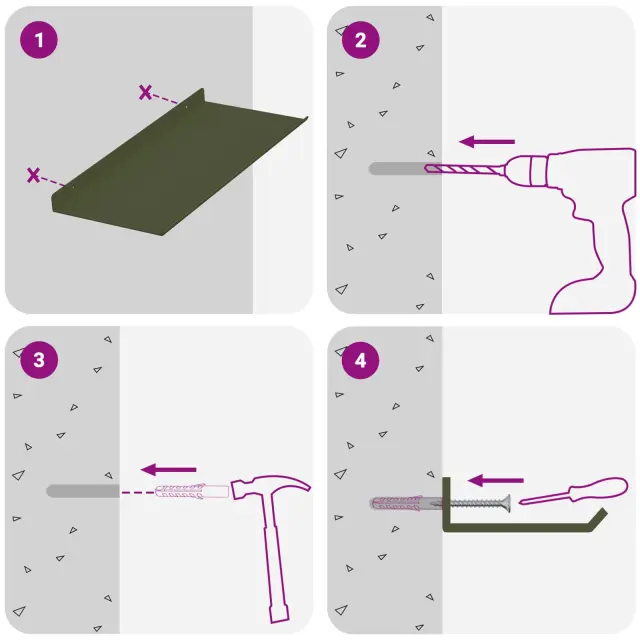 • Enostavna namestitev Polica je zasnovana za hitro in enostavno montažo na steno z osnovnimi orodji. Vijaki niso vključeni, takže jih izberite glede na svojo steno.