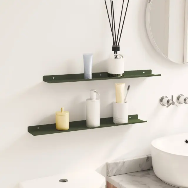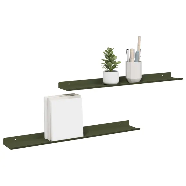 vidaXL Ležeča polica 2 pcs Oljčno zelena 60 x 8,5 x 2,5 cm Jeklo