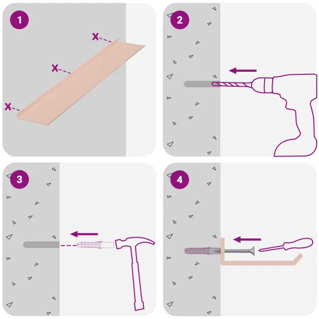 • Enostavna namestitev Polica je zasnovana za hitro in enostavno montažo na steno z osnovnimi orodji. Vijaki niso vključeni, takže jih izberite glede na svojo steno.
