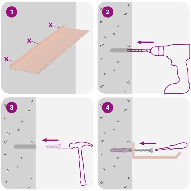 • Enostavna namestitev Polica je zasnovana za hitro in enostavno montažo na steno z osnovnimi orodji. Vijaki niso vključeni, takže jih izberite glede na svojo steno.