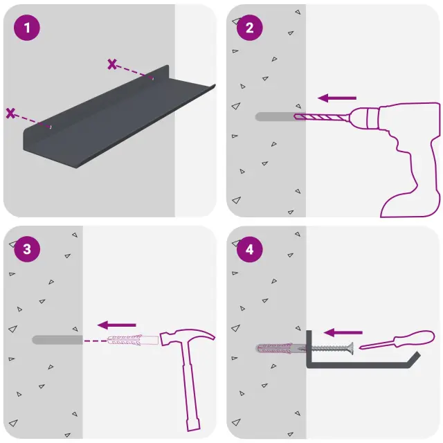 • Enostavna namestitev Polica je zasnovana za hitro in enostavno montažo na steno z osnovnimi orodji. Vijaki niso vključeni, takže jih izberite glede na svojo steno.