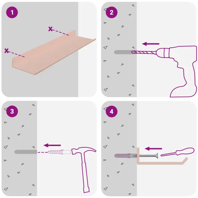 • Enostavna namestitev Polica je zasnovana za hitro in enostavno montažo na steno z osnovnimi orodji. Vijaki niso vključeni, takže jih izberite glede na svojo steno.