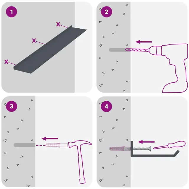 • Enostavna namestitev Polica je zasnovana za hitro in enostavno montažo na steno z osnovnimi orodji. Vijaki niso vključeni, takže jih izberite glede na svojo steno.