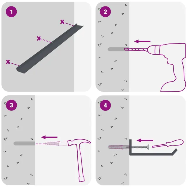 • Enostavna namestitev Polica je zasnovana za hitro in enostavno montažo na steno z osnovnimi orodji. Vijaki niso vključeni, takže jih izberite glede na svojo steno.