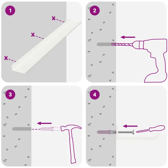 • Enostavna namestitev Polica je zasnovana za hitro in enostavno montažo na steno z osnovnimi orodji. Vijaki niso vključeni, takže jih izberite glede na svojo steno.
