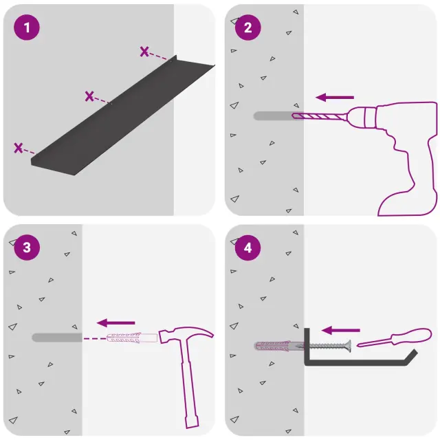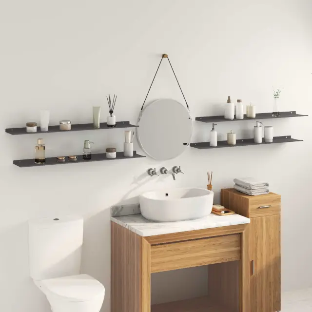 • Enostavna namestitev Polica je zasnovana za hitro in enostavno montažo na steno z osnovnimi orodji. Vijaki niso vključeni, takže jih izberite glede na svojo steno.