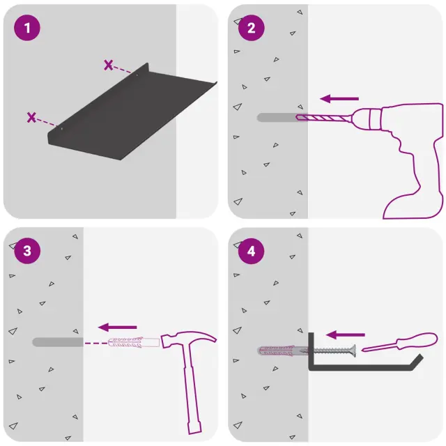 • Enostavna namestitev Polica je zasnovana za hitro in enostavno montažo na steno z osnovnimi orodji. Vijaki niso vključeni, takže jih izberite glede na svojo steno.