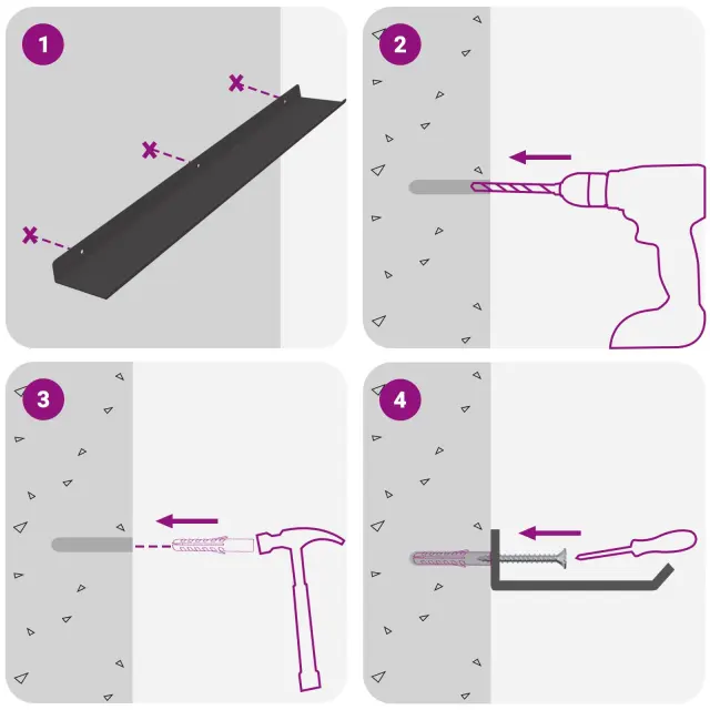 • Enostavna namestitev Polica je zasnovana za hitro in enostavno montažo na steno z osnovnimi orodji. Vijaki niso vključeni, takže jih izberite glede na svojo steno.
