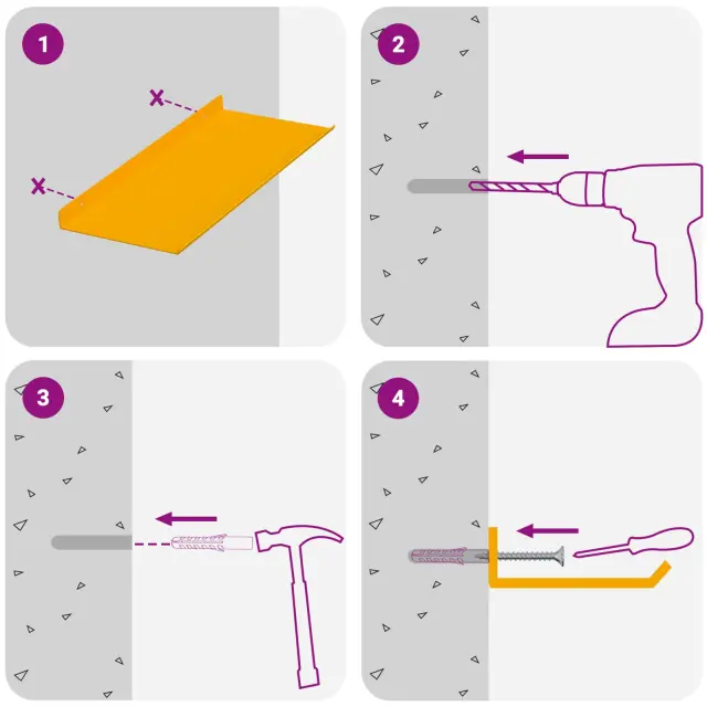 • Enostavna namestitev Polica je zasnovana za hitro in enostavno montažo na steno z osnovnimi orodji. Vijaki niso vključeni, takže jih izberite glede na svojo steno.