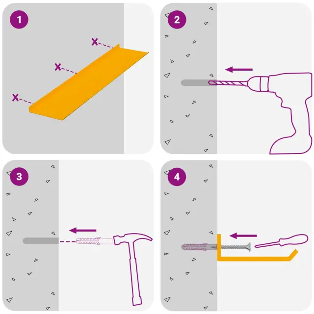 • Enostavna namestitev Polica je zasnovana za hitro in enostavno montažo na steno z osnovnimi orodji. Vijaki niso vključeni, takže jih izberite glede na svojo steno.