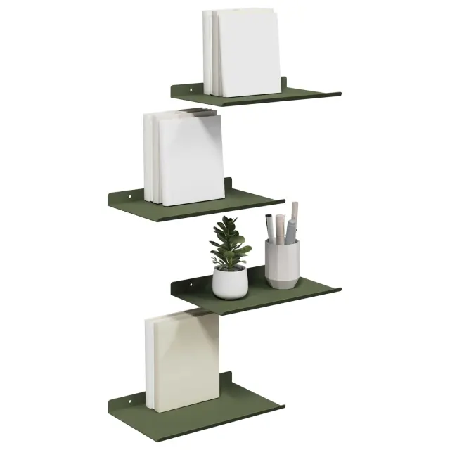 vidaXL Ležeča polica 4 pcs Oljčno zelena 30 x 18 x 2,5 cm Jeklo