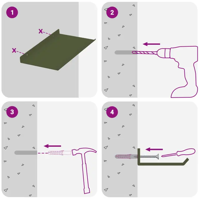 • Enostavna namestitev Polica je zasnovana za hitro in enostavno montažo na steno z osnovnimi orodji. Vijaki niso vključeni, takže jih izberite glede na svojo steno.
